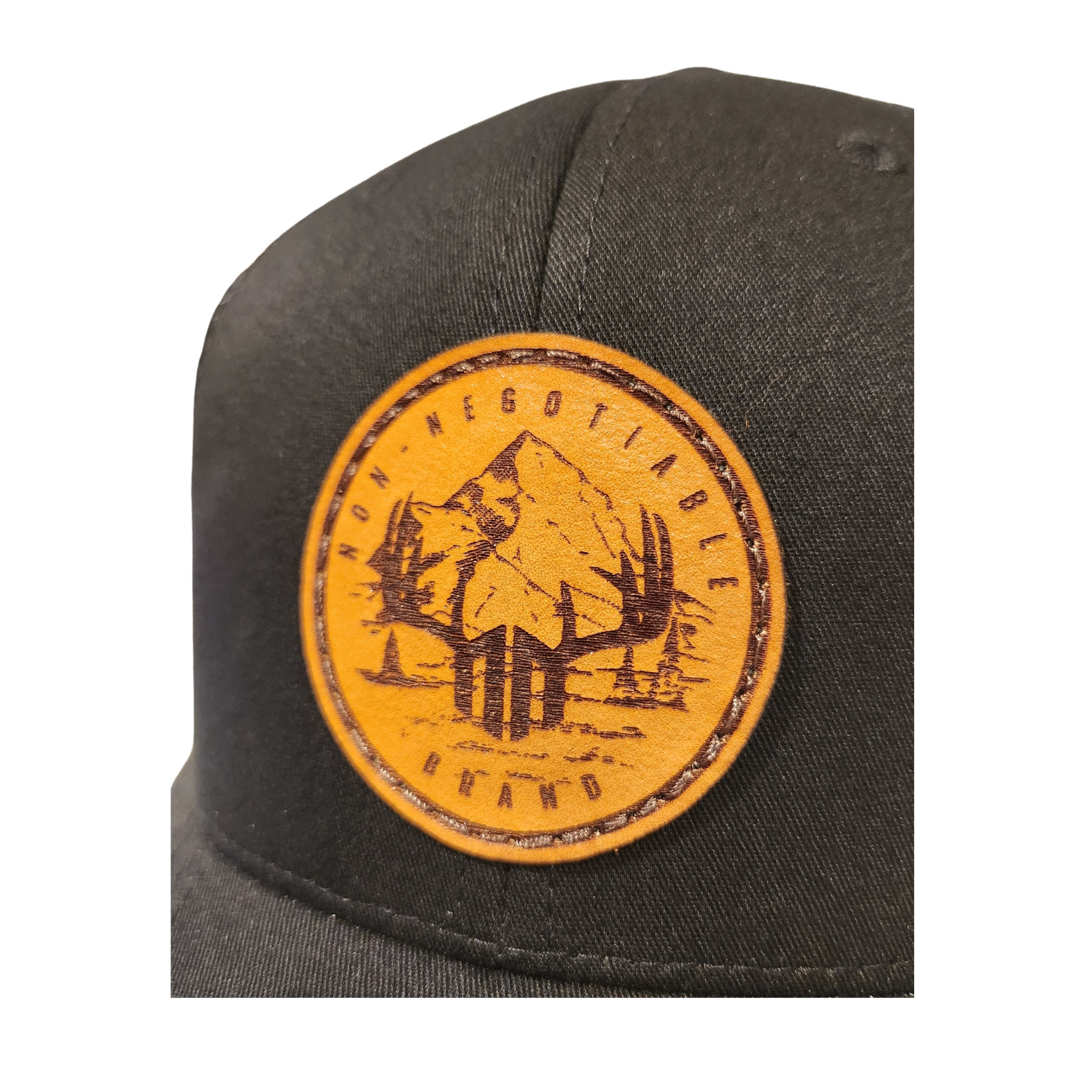 WITH REAL LEATHER PATCHES CREATED AND STITCHED TO THE FLEXFIT 110, IN RURAL MANITOBA!